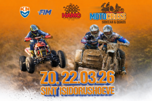 Zondag 22 maart komen de Sidecars en Quads de 3e Master-wedstrijd rijden op ons mooie circuit ’t Kotterbos. Na Eersel en Oss wordt de strijd voortgezet in St. Isidorushoeve. Klasses die deelnemen zijn Quad Masters, NK Sidecar, NK Quads, Cup Sidecar en Cup Quads inclusief de rookies.